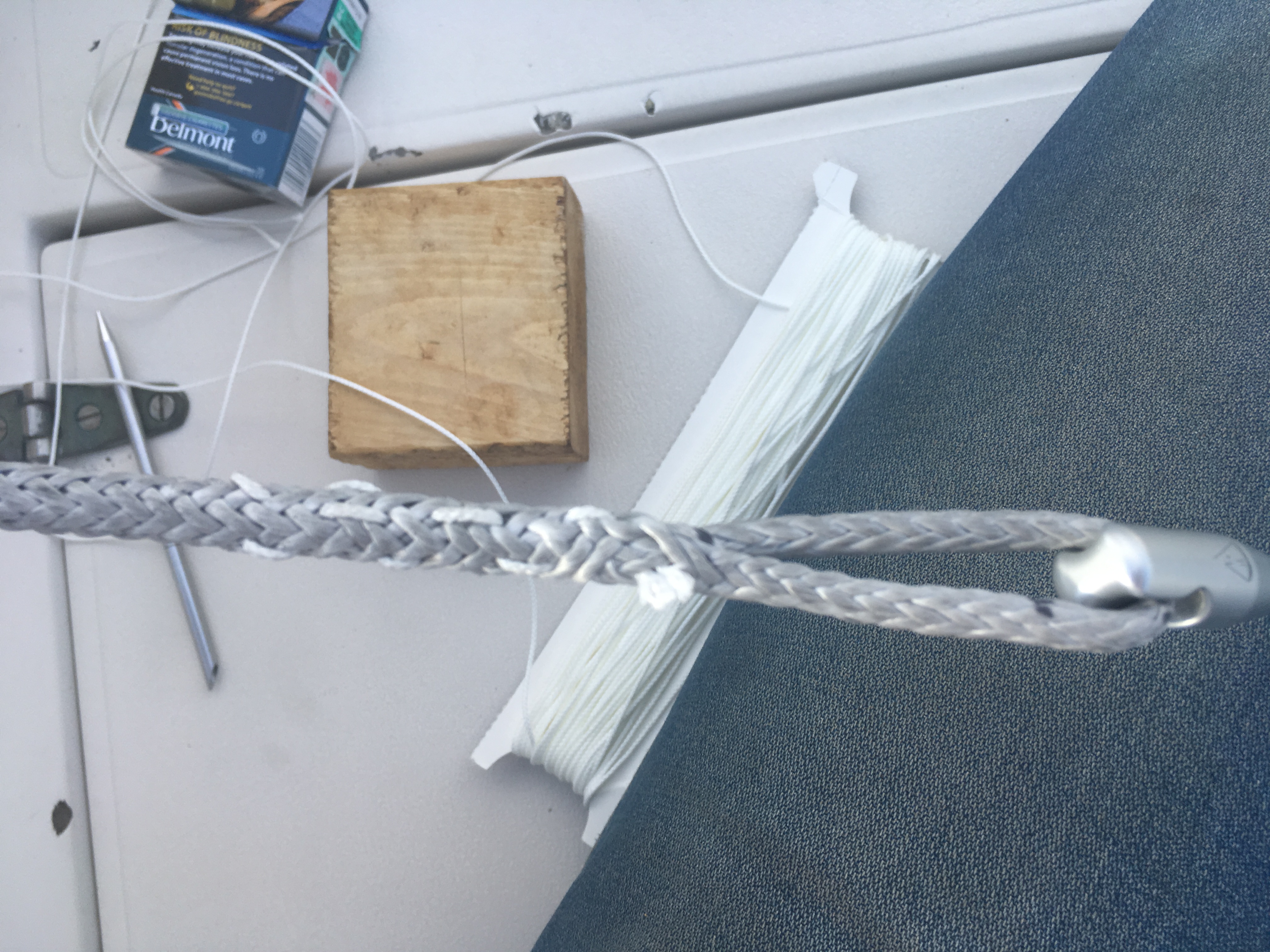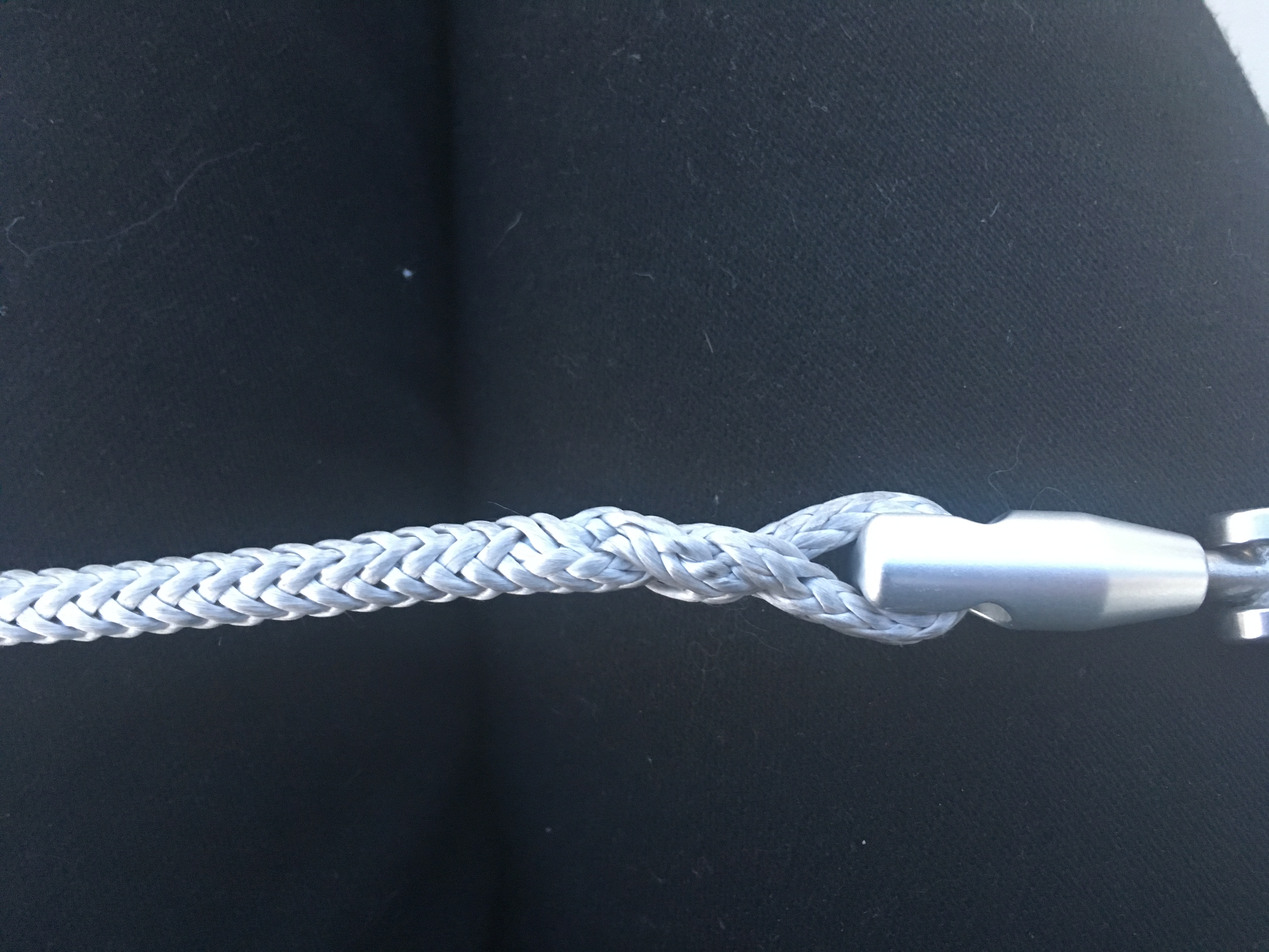 I replaced the rusty starboard lifeline with Dyneema because it was cheaper than steel replacements. You can do it myself if you want to learn about rope splicing. I think it looks better, too.