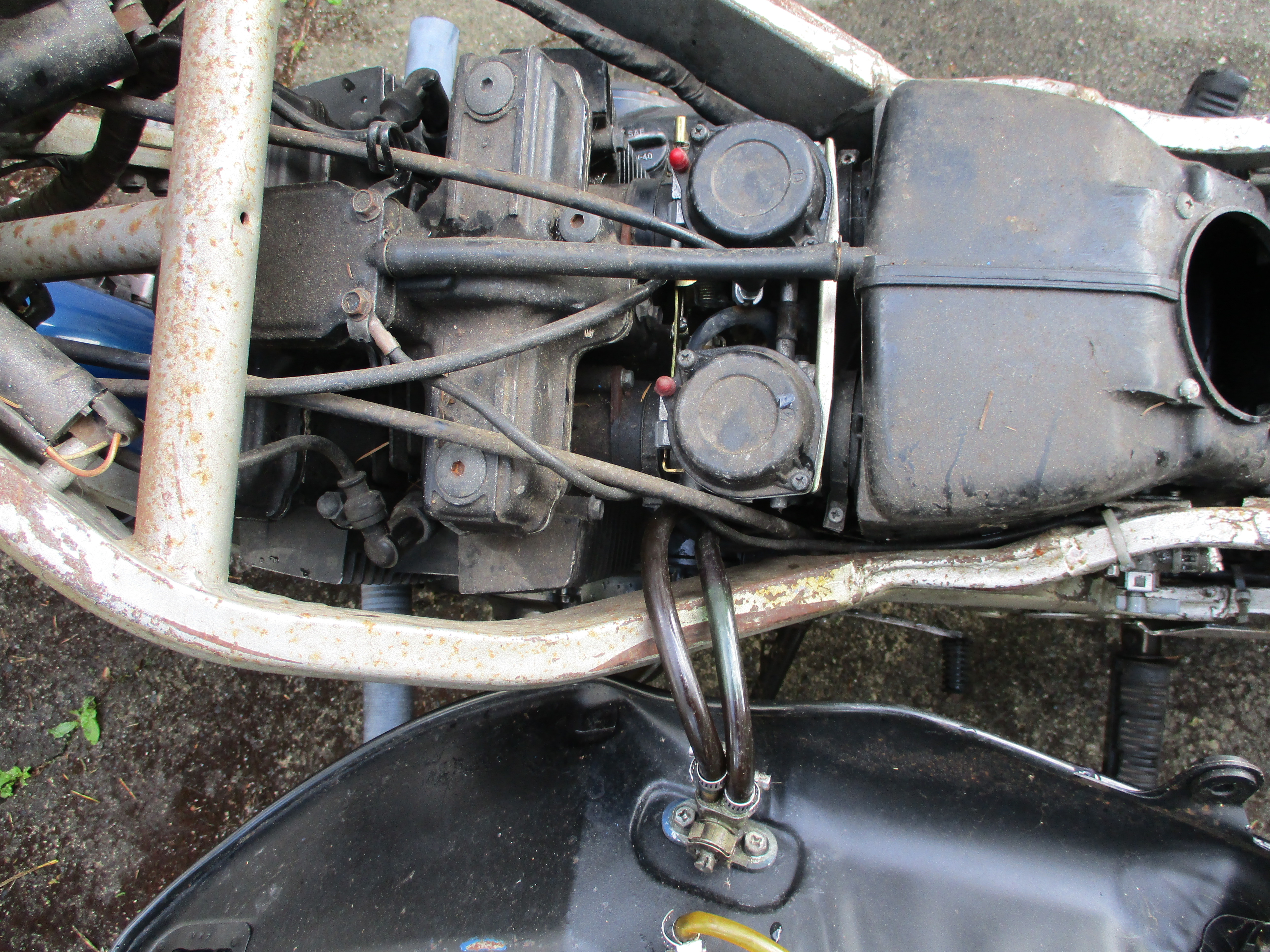 The engine seemed to work okay but cosmetically was in bad shape. It had been slid on both sides and the drive chain had come off at least once before. It was really dirty and had some broken fasteners and stripped holes too.