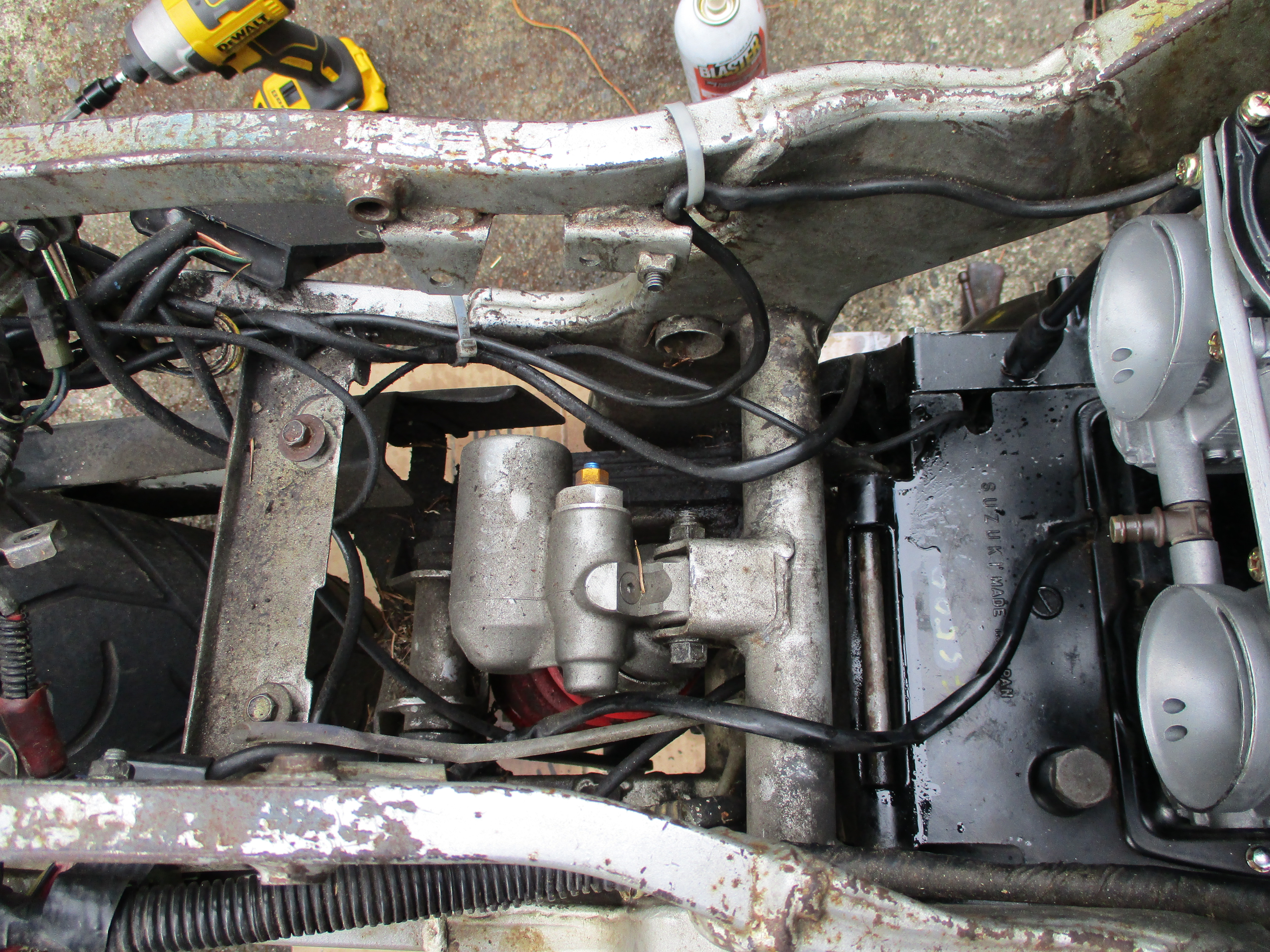 The front and rear brakes were in sorry shape. The front needed a master cylinder refresh, new hose, and caliper refresh. The rear needed the same. The fluid in both systems looked very old.