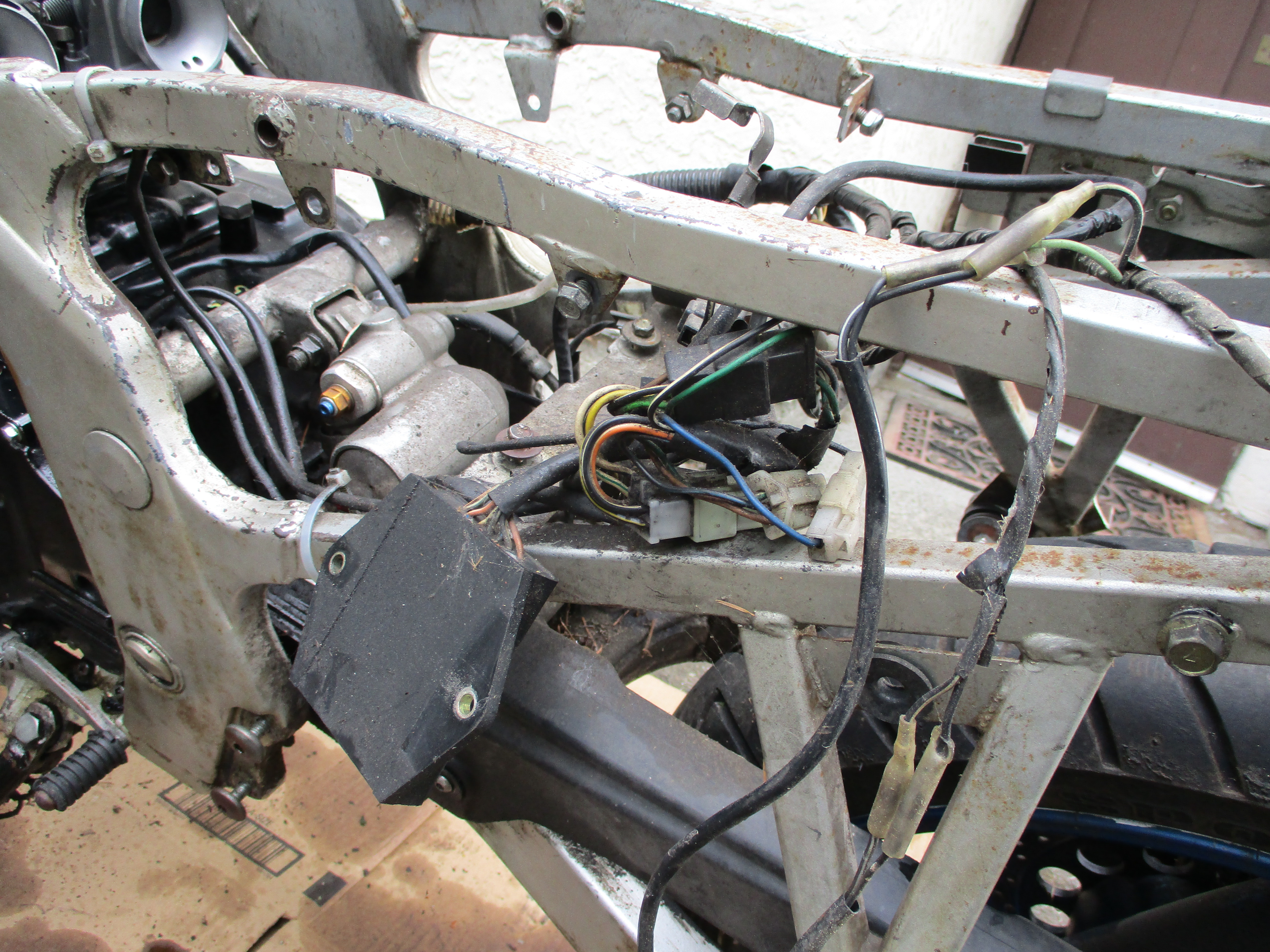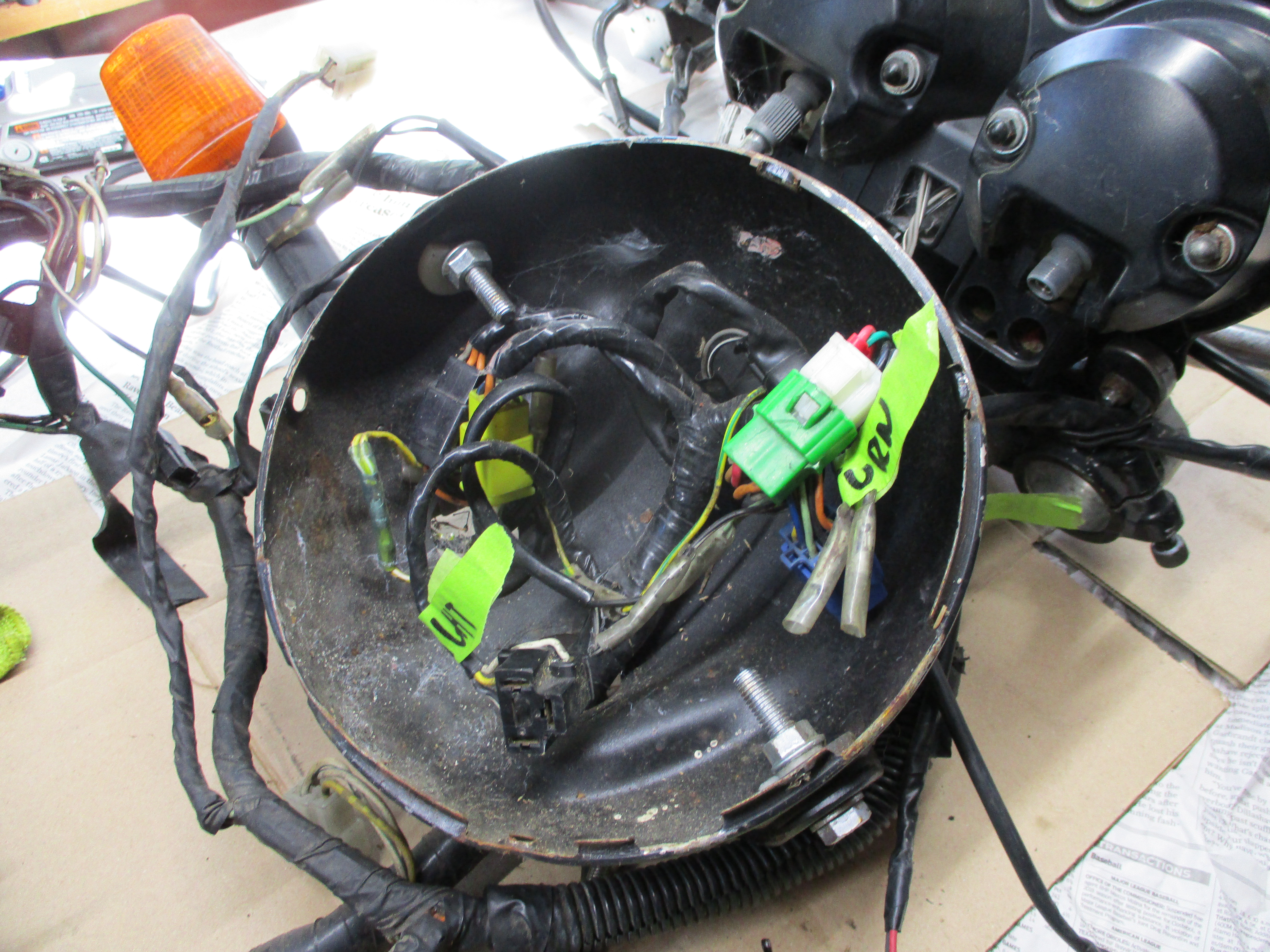 The main wiring harness looked ok but needed some re-taping and cleaning in spots. I continuity tested most circuits. I pulled apart the important terminal connectors, cleaned them, and checked they made good firm contact to their opposite sex partner terminals.