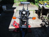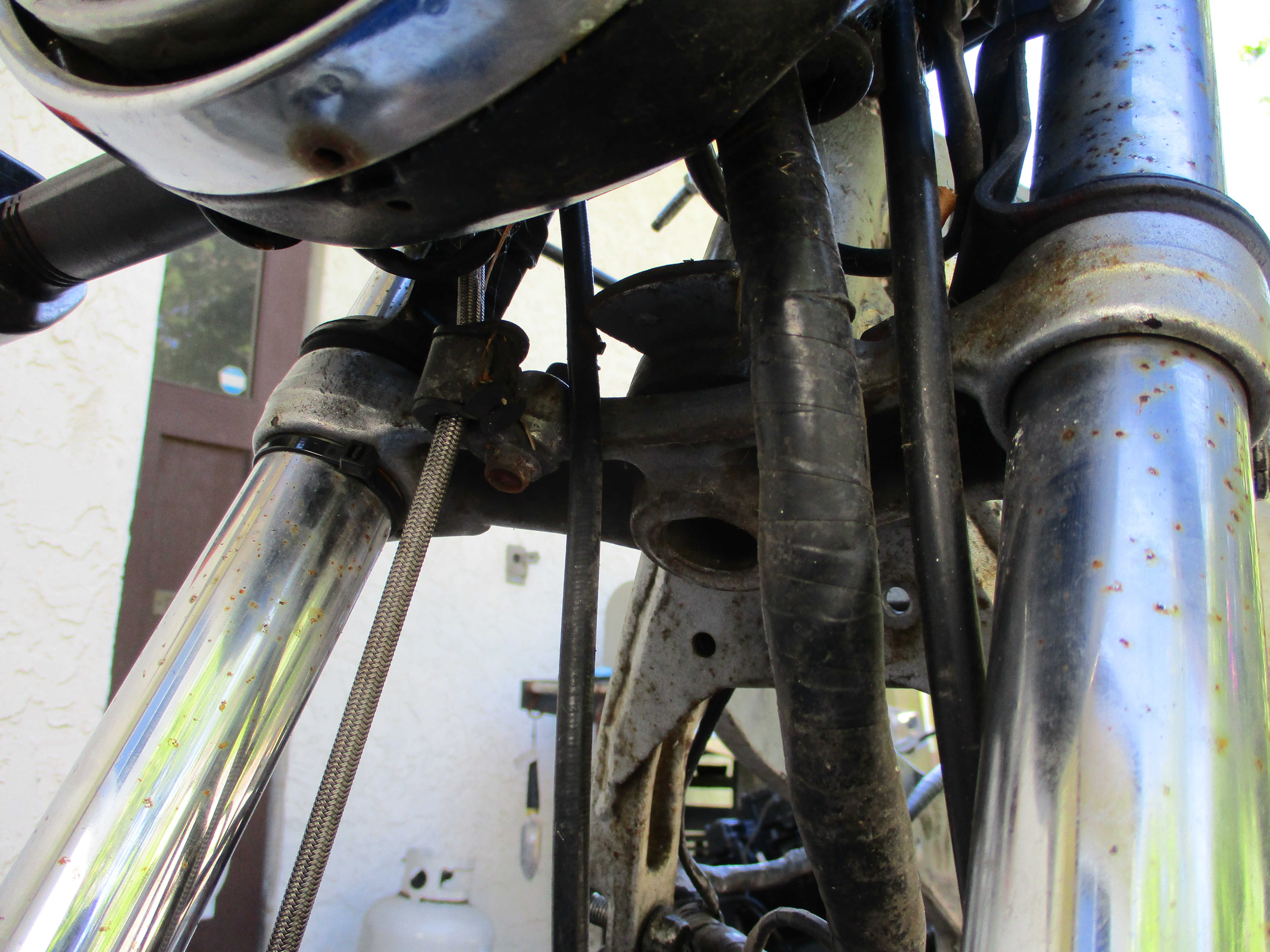 The handlebars were in bad shape. The chrome was chipping away and they were rusting. The controls worked but were stiff. The gauges were rusty, dirty, full of spiders and missing parts.