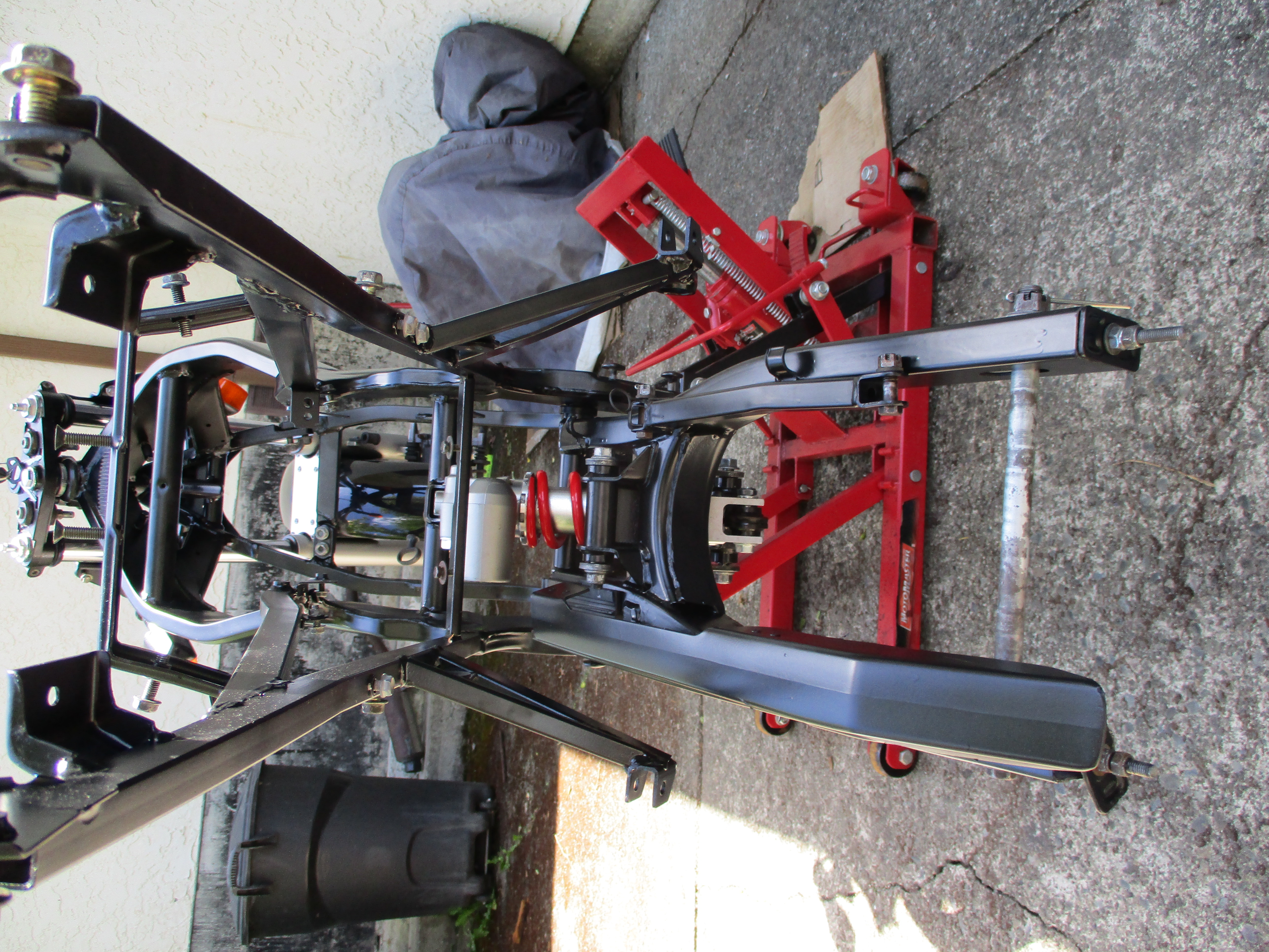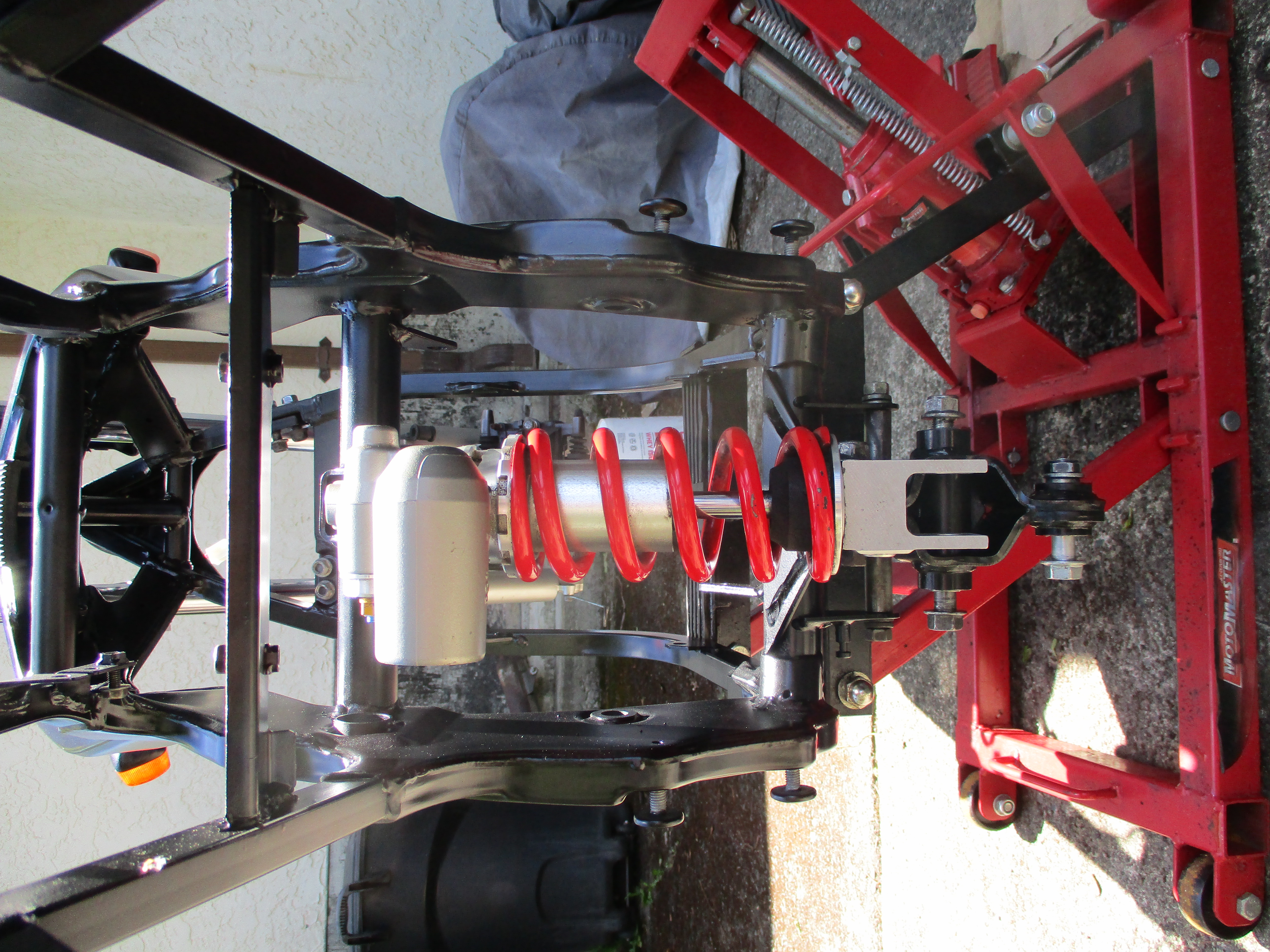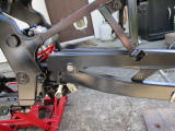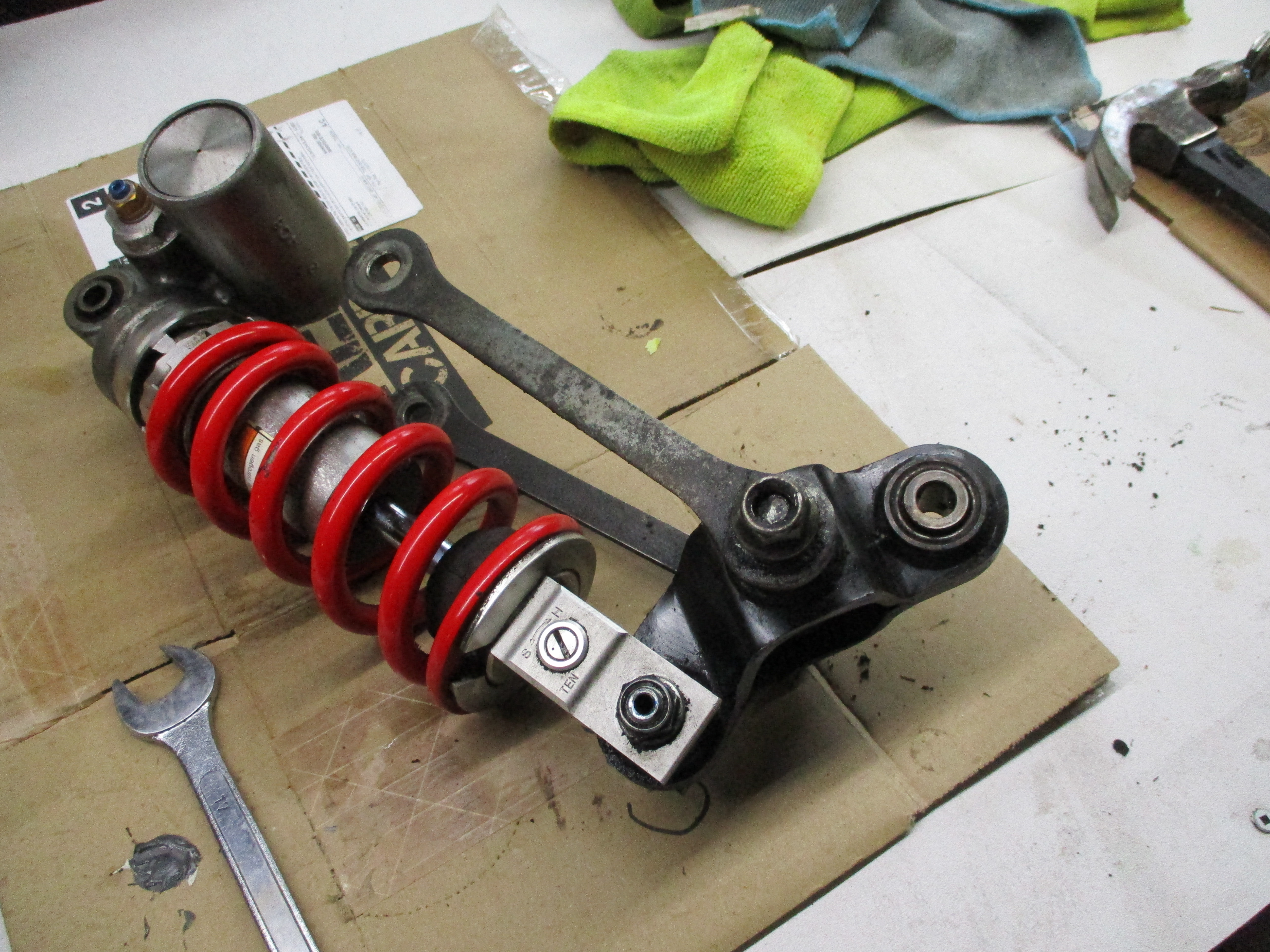 The rear suspension had one bad needle bearing in the pivot lever where it attaches to the frame. I bought a new one and replaced it.