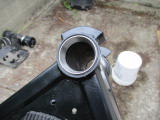 The second, black, better gas tank that came with the motorcycle looked great externally but internally was a nightmare. It had lots of rust in the bottom of the tank, but someone had then coated over it, with what looked like to me, Red-Kote. And instead of removing the tank petcock before sealing it, they sealed right over the pickup screen on the petcock.