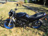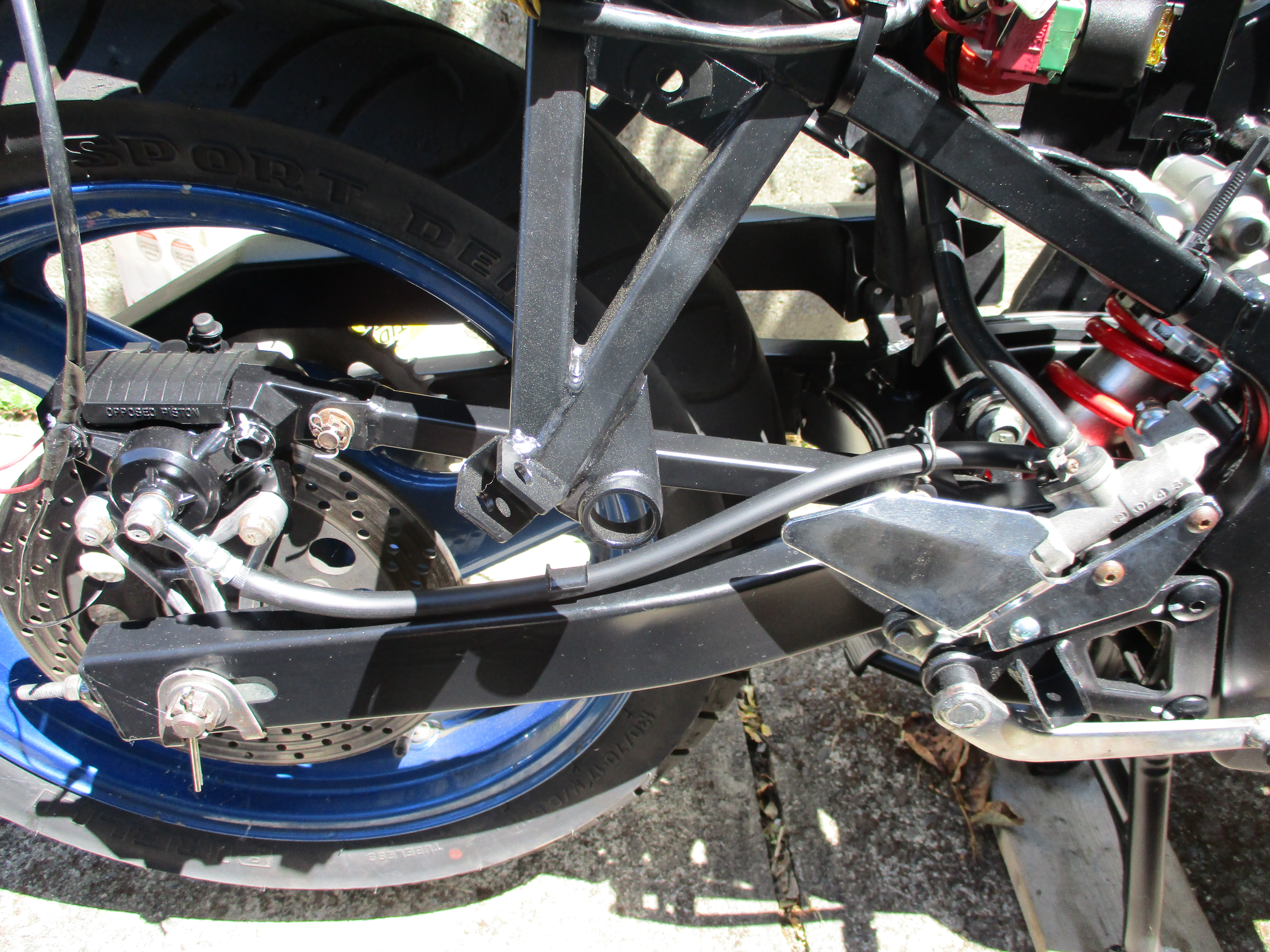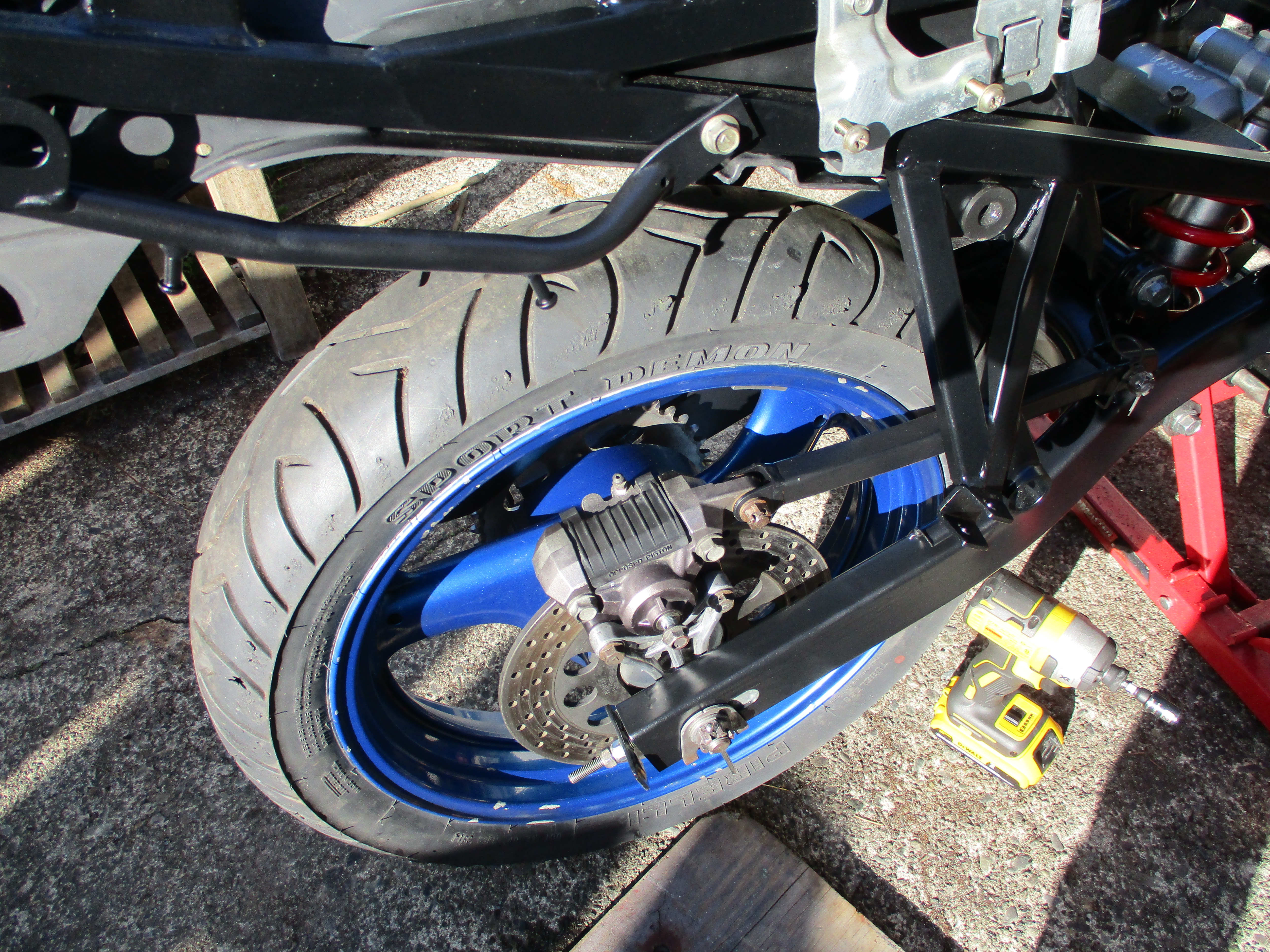 This rear shock is not the stock one, as the stock shock does not have an external reservoir. I think this is a GSX-R shock.
