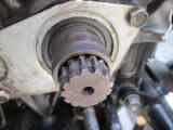The countershaft spline where the sprocket mounts also has unusual wear on it. Consultation online shows that this is a common problem with this motorcycle and is likely caused by rear wheel misalignment. I can not help but think that the wimpy circlip retention mechanism has something to do with that too. My KLR has a thread on the end of the shaft that a big nut threads onto keeping the sprocket very secure.