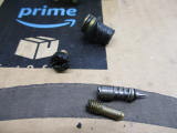 The countershaft sprocket cover had one bolt broken off out of 4, but luckily some of it was still sticking out of the hole, and twisting it out with pliers was easy. I bought a new one to replace it. At some point the drive chain had broken or come off and smashed around inside this cover. The rearmost mounting boss for the sprocket cover was missing but luckily not much other damage.