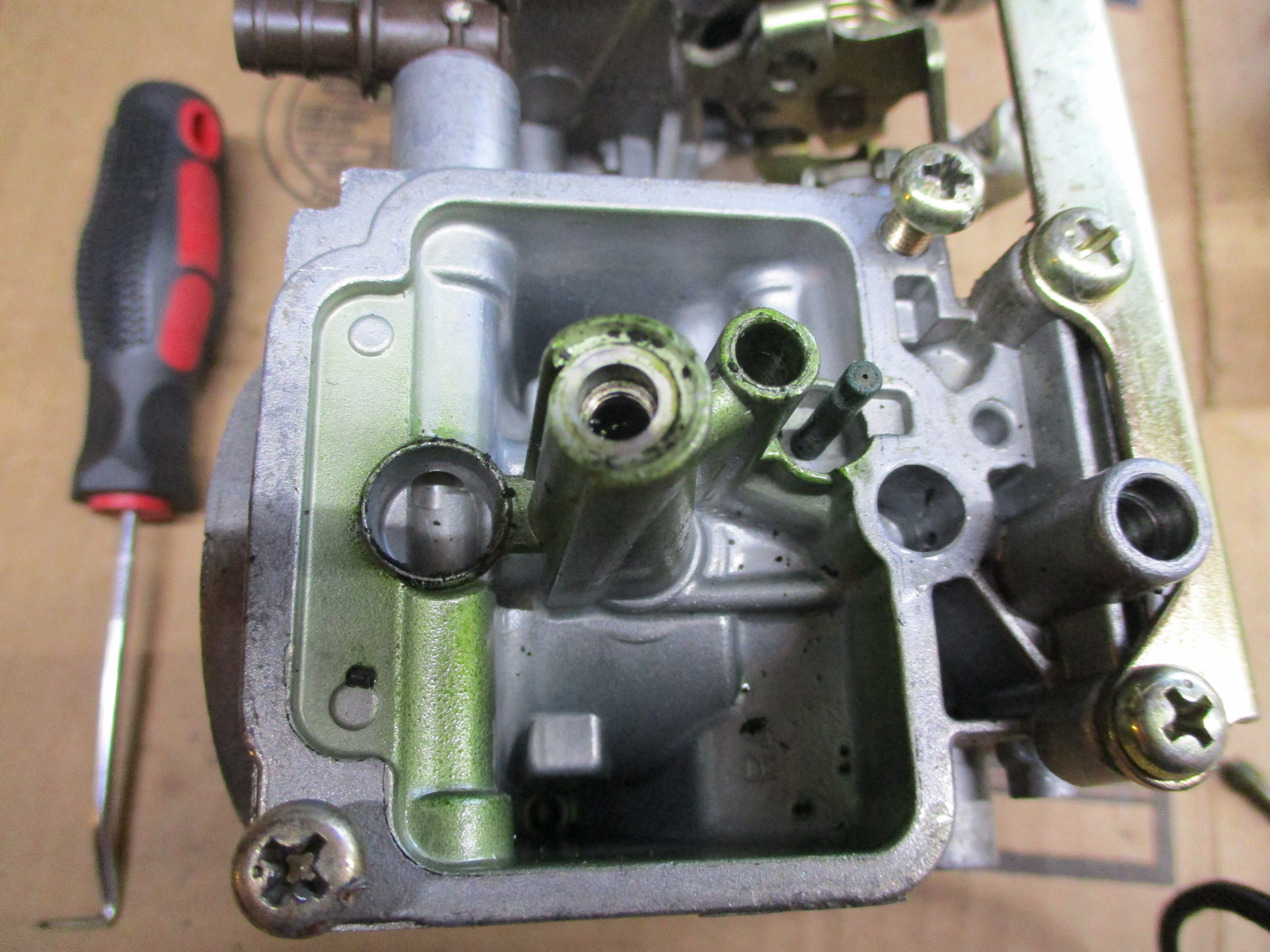 But I tore down the old carburetor just to see what was inside. It was a ghastly sight; no wonder it did not work. The float valves were corroded and stuck, jets corroded, enrichner pickup tubes clogged, and internal enrichner passageways were clogged. I had never seen a carburetor this bad.