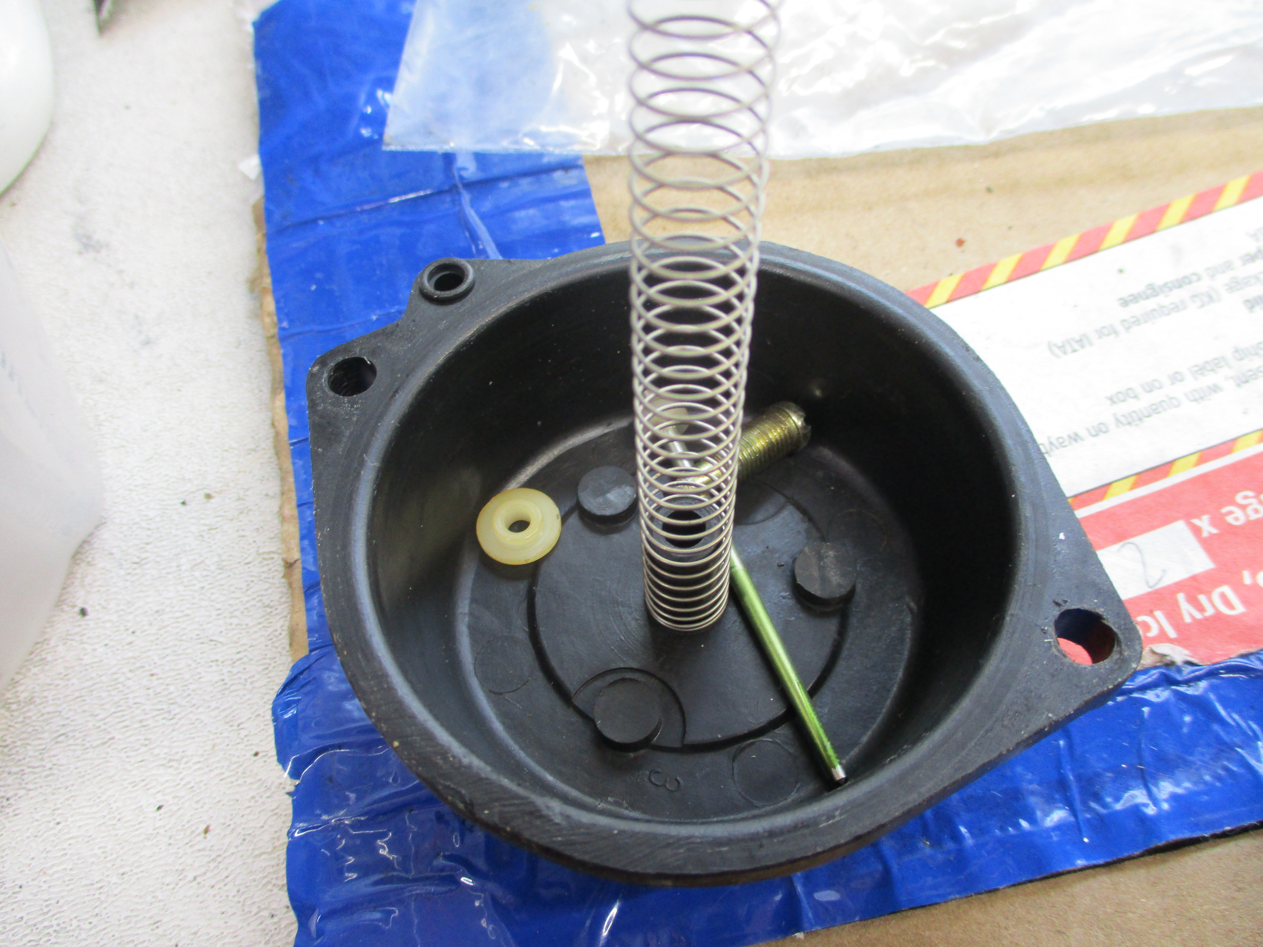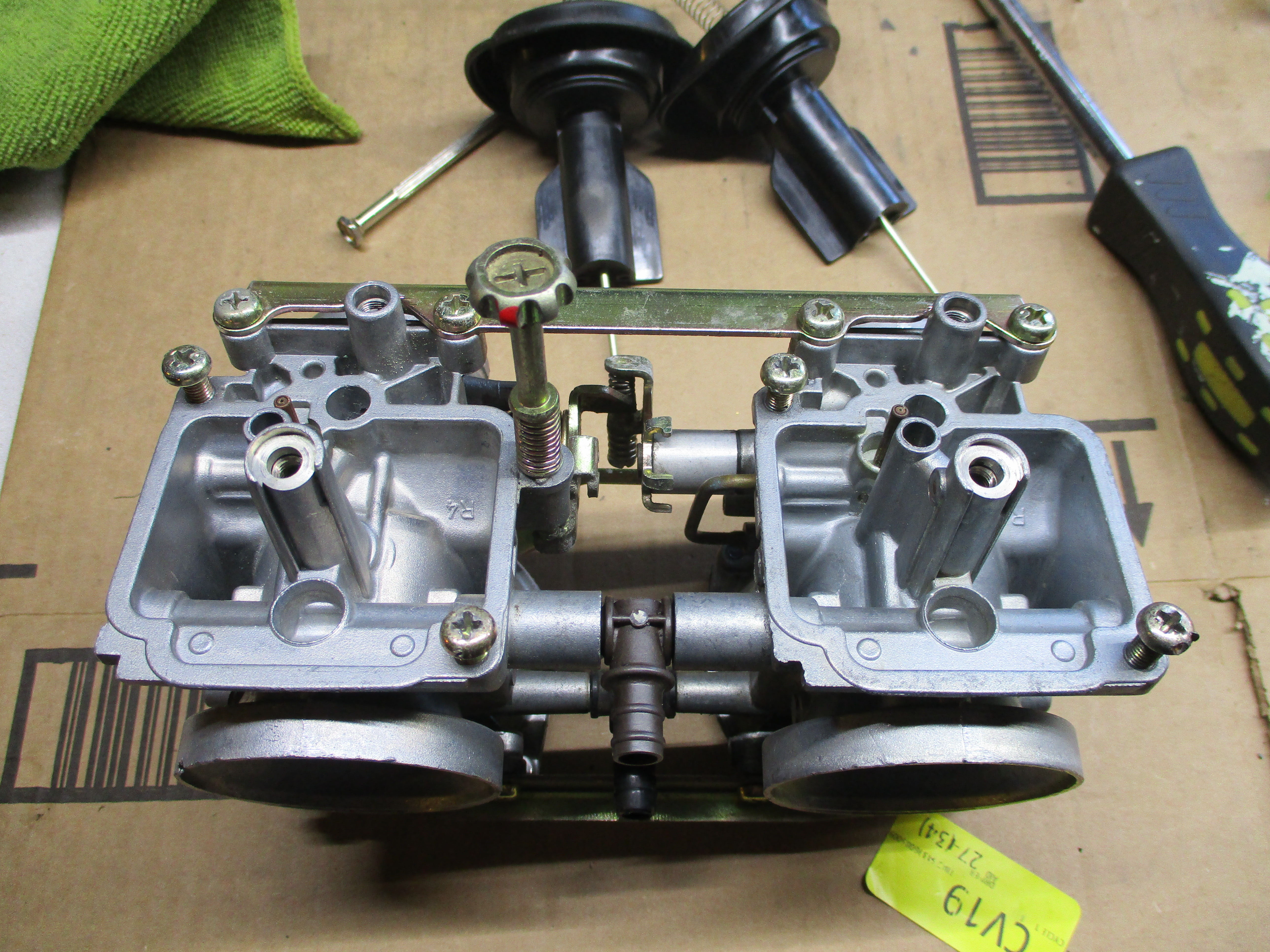 I used the refurbished carburetor because I knew the original one had problems. I did not have to do anything to the refurbished carburetor to get it to work. The stock airbox was in ok condition, I painted it with trim and bumper paint and did a thread repair on one of the brass mounting tabs.