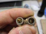 At some point the dice numeral 5 was drilled into the top left outside frame rail as a decoration. I did not like that so I filled the holes with JB weld and sanded them down flush before painting.