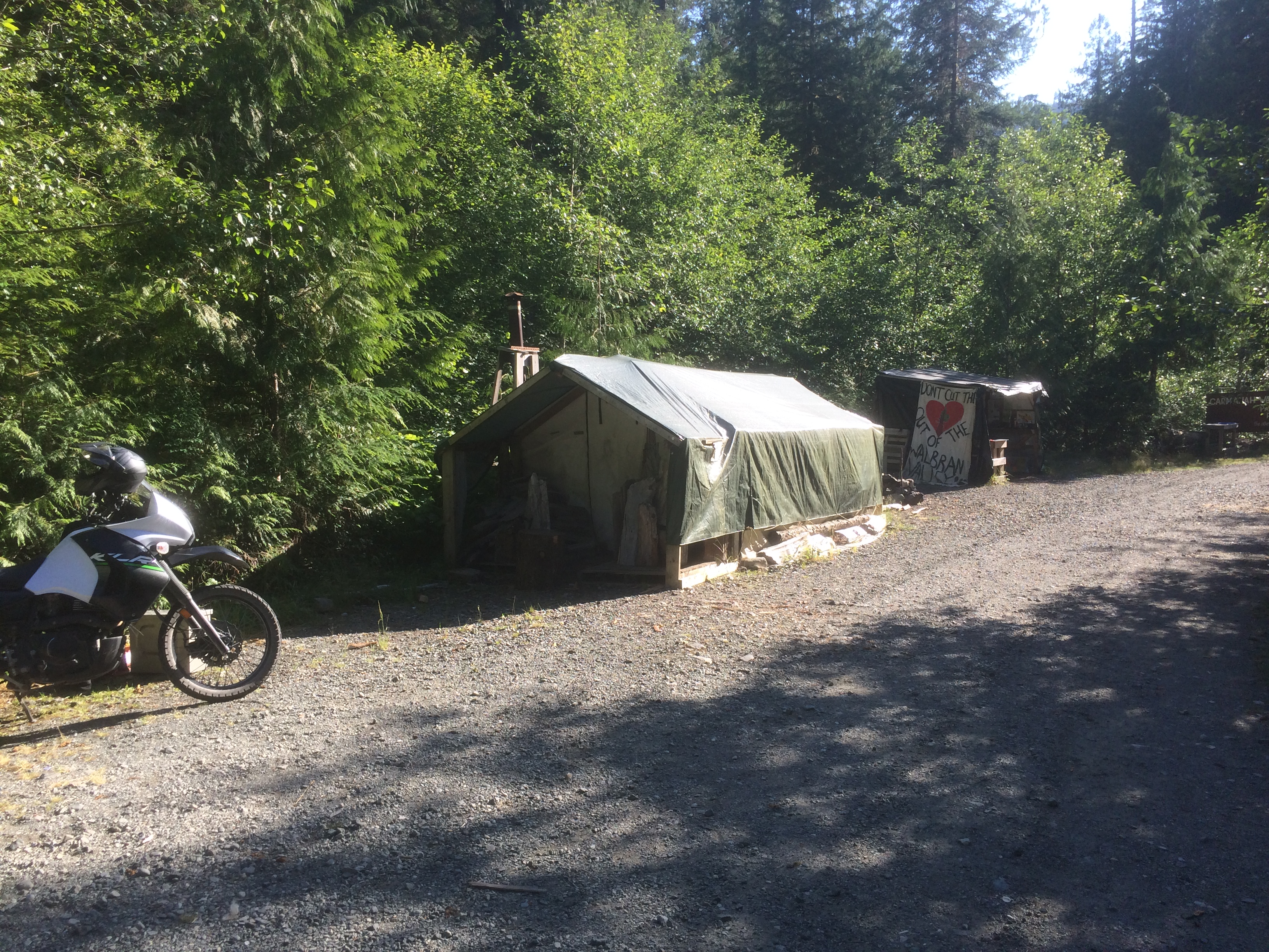 I inadvertently learned some things about the British Columbia timber industry and how exporting raw logs is bad economics. I think this spot was occupied with protesters at one point by the classic chain-yourself-to-a-tree hippies.